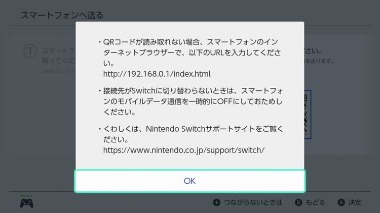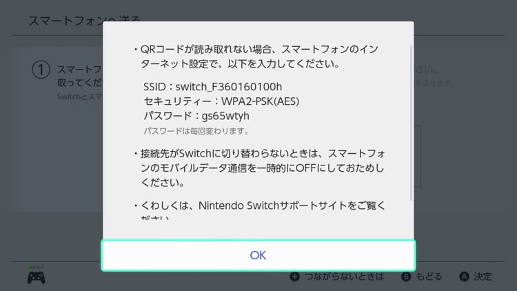 接続までに時間が掛かる場合があります。Switch側の画面がQRコード②に切り替われば接続完了です。